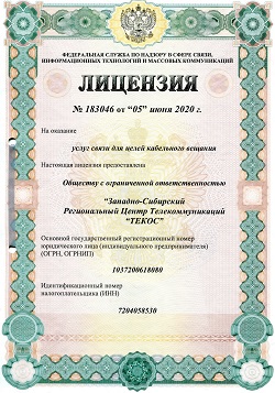 Наша деятельность регулируется лицензией на оказание телематических услуг связи № 182341 от 05 сентября 2018 года и лицензией на оказание услуг связи по передаче данных, за исключением услуг связи по передаче данных для целей по передаче голосовой информации № 182340 от 02 октября 2018 года.